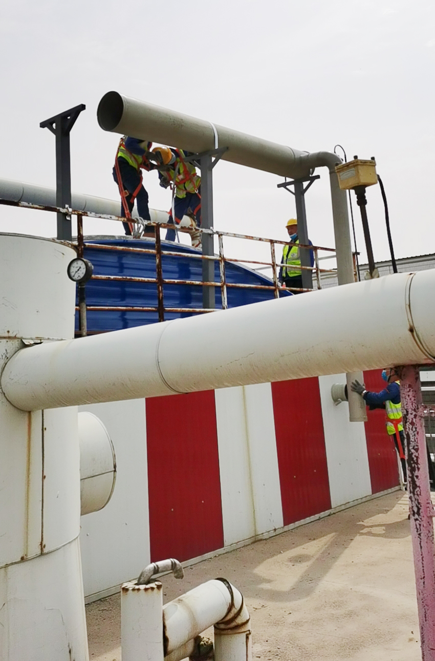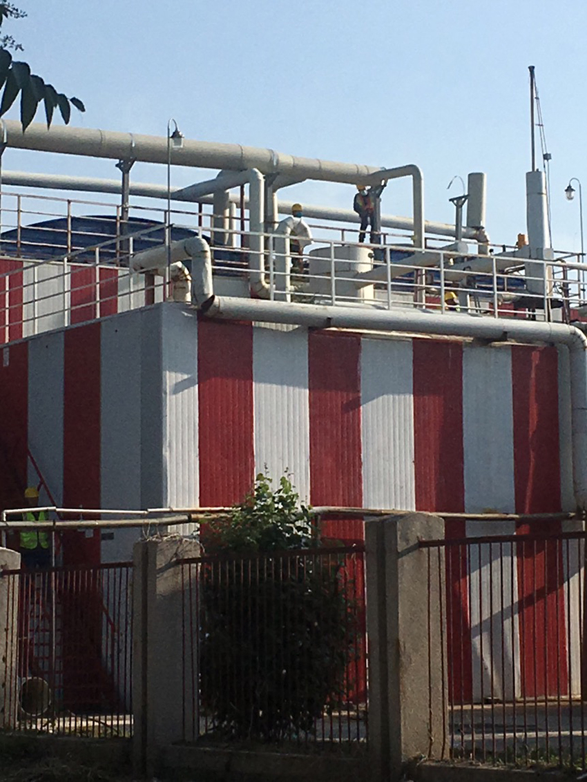 中糧可口可樂遼寧(北)污水處理站VOCs廢氣處理工程,整個處理工藝包括收集和處理兩大項。為了避免氣味源氣味擴散,擴散源要求封閉,并使整個厭氧池處于負壓狀態。和帆環境工程有限公司在根據沈陽可口可口VOCs廢氣處理要求和國家廢氣處理標準,量身定制了一套VOCs廢氣處理方案。及時解決了污水站厭氧池臭氣擴撒問題。由于工廠位置在冬季來臨時冷熱空氣的交換量比較大時,要考慮防止冬天設備運行結冰問題。和帆環境對針對PP管路和噴淋塔冬季運行做了伴熱帶加橡塑海綿保暖措施。